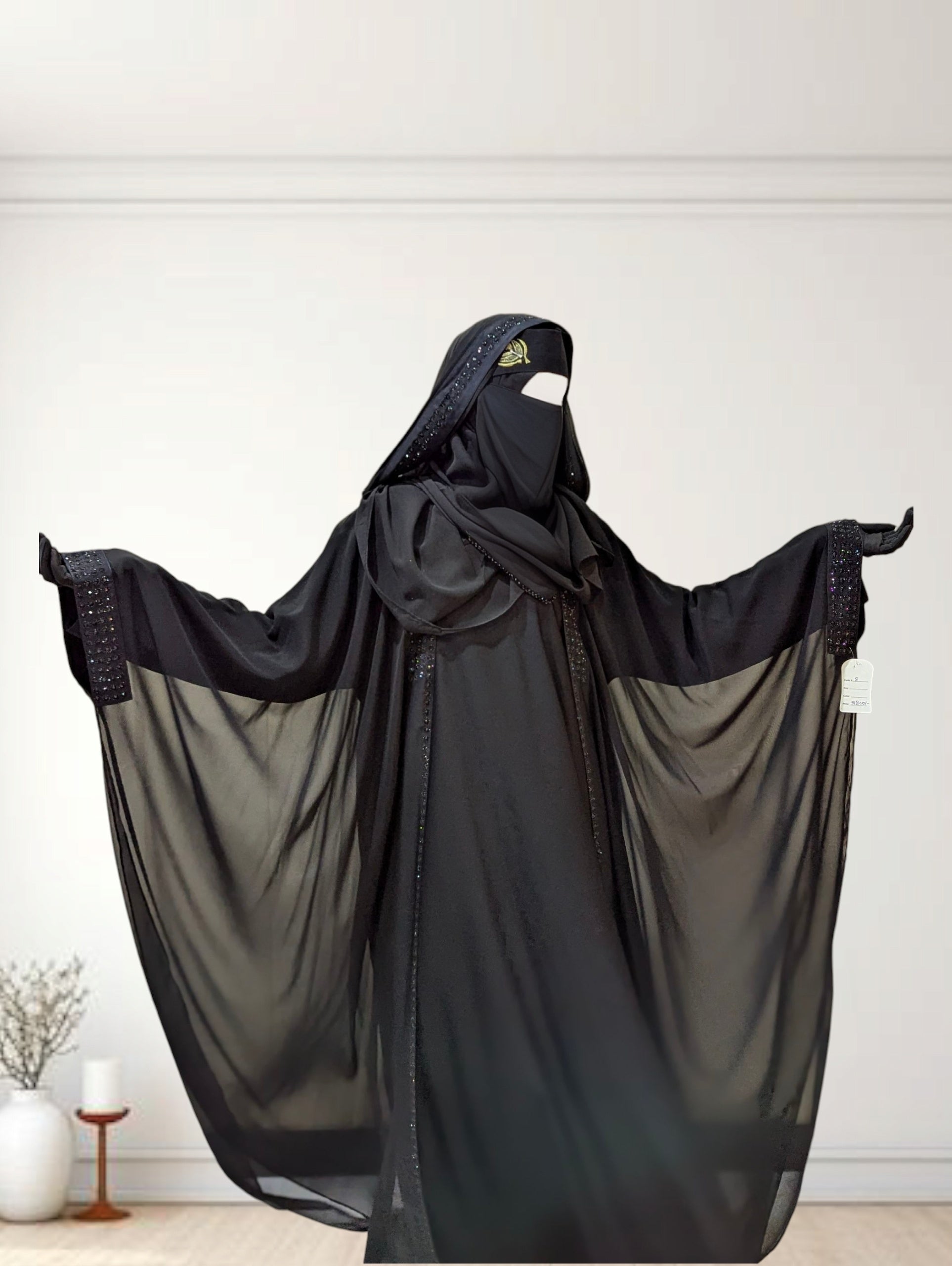 It’s an absolute must have stylish and modern Abaya which can be carried on parties, formal occasions, Eid and even on everyday basis due to its practical and convenient front open design. Kiara Black Abaya can be best paired with hijabs in shades of grey and beige for an absolute classy and elegant look.